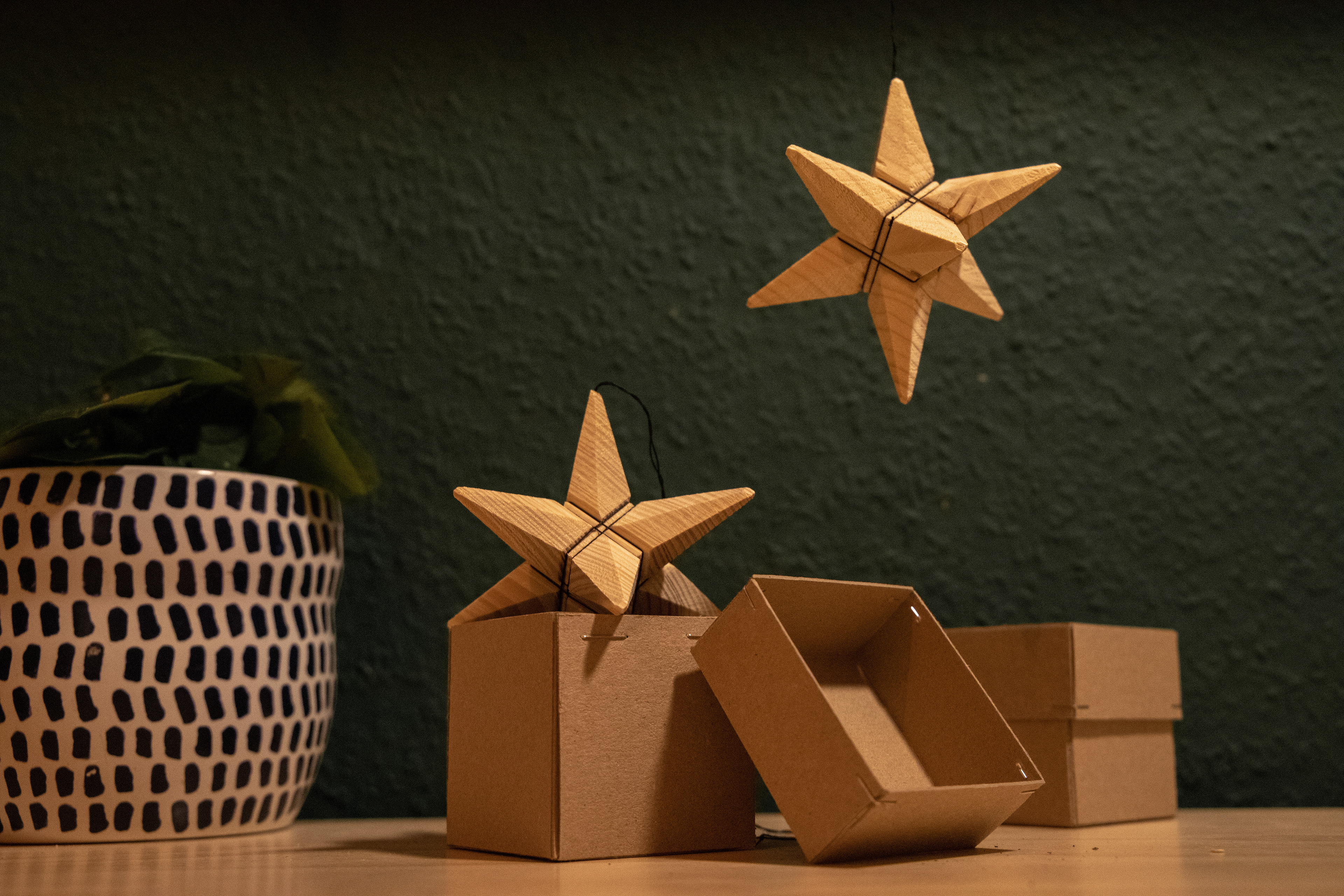 Der erste handgefertigte, dreidimensionalle und aus einem Holzstück hergestellte Weihnachtsstern